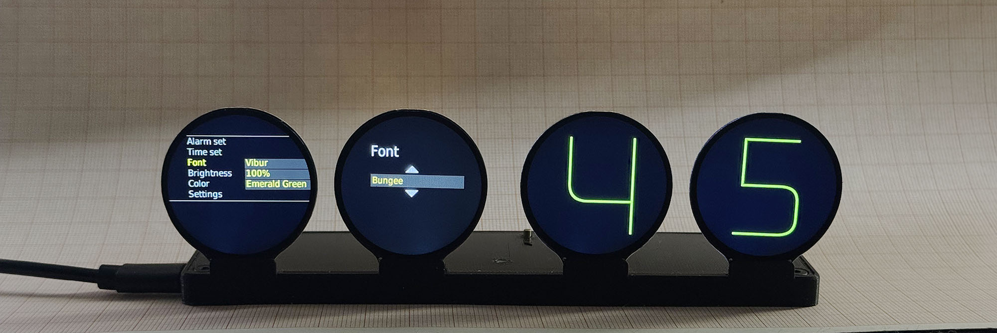 Choose the font style for the displayed time. A preview is shown while you cycle through the different fonts.