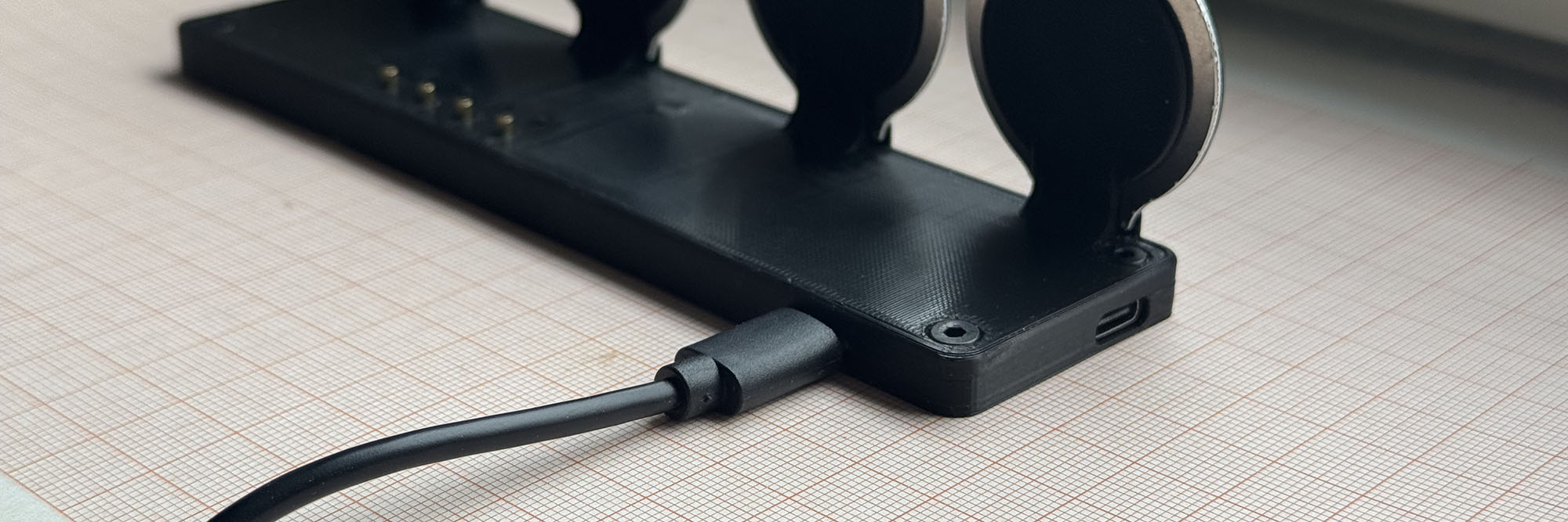 The QuadClock Orbix is powered via USB-C. Use a proper USB power adapter and cable (a simple 5V adapter will do). You can connect power either at the back or the side, whichever suits your setup best. Just don’t connect both at the same time.